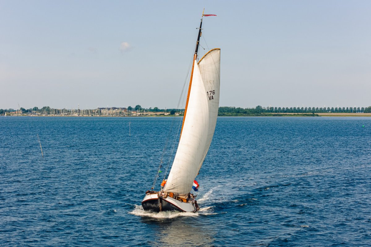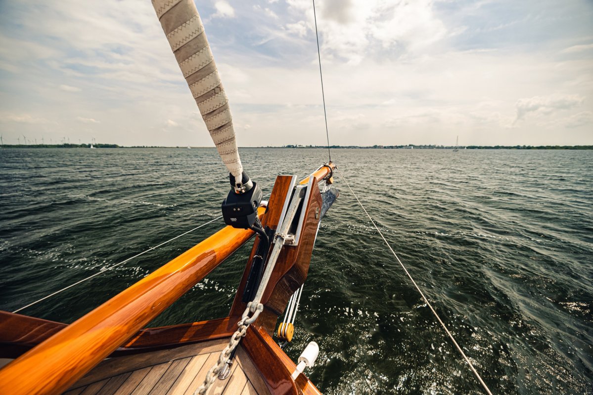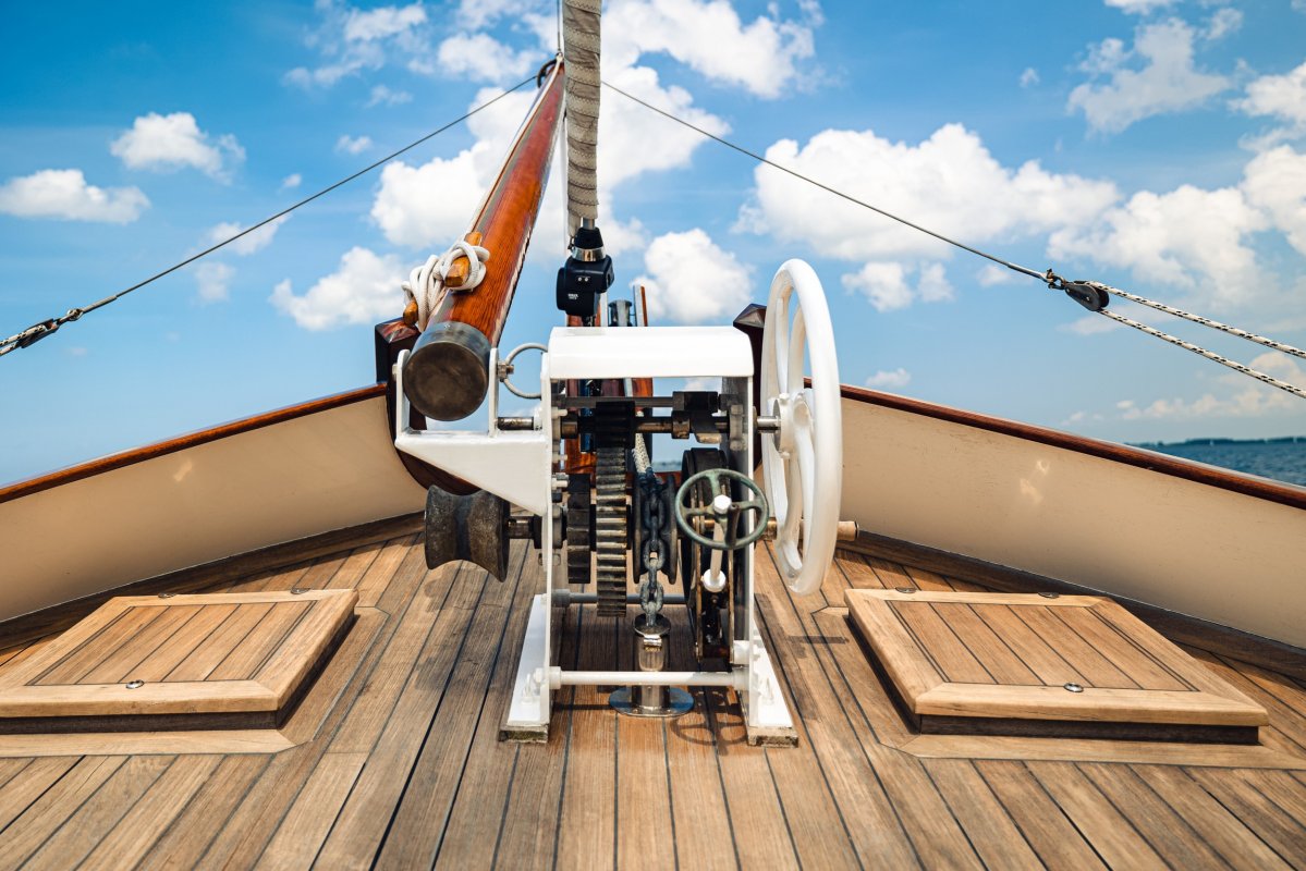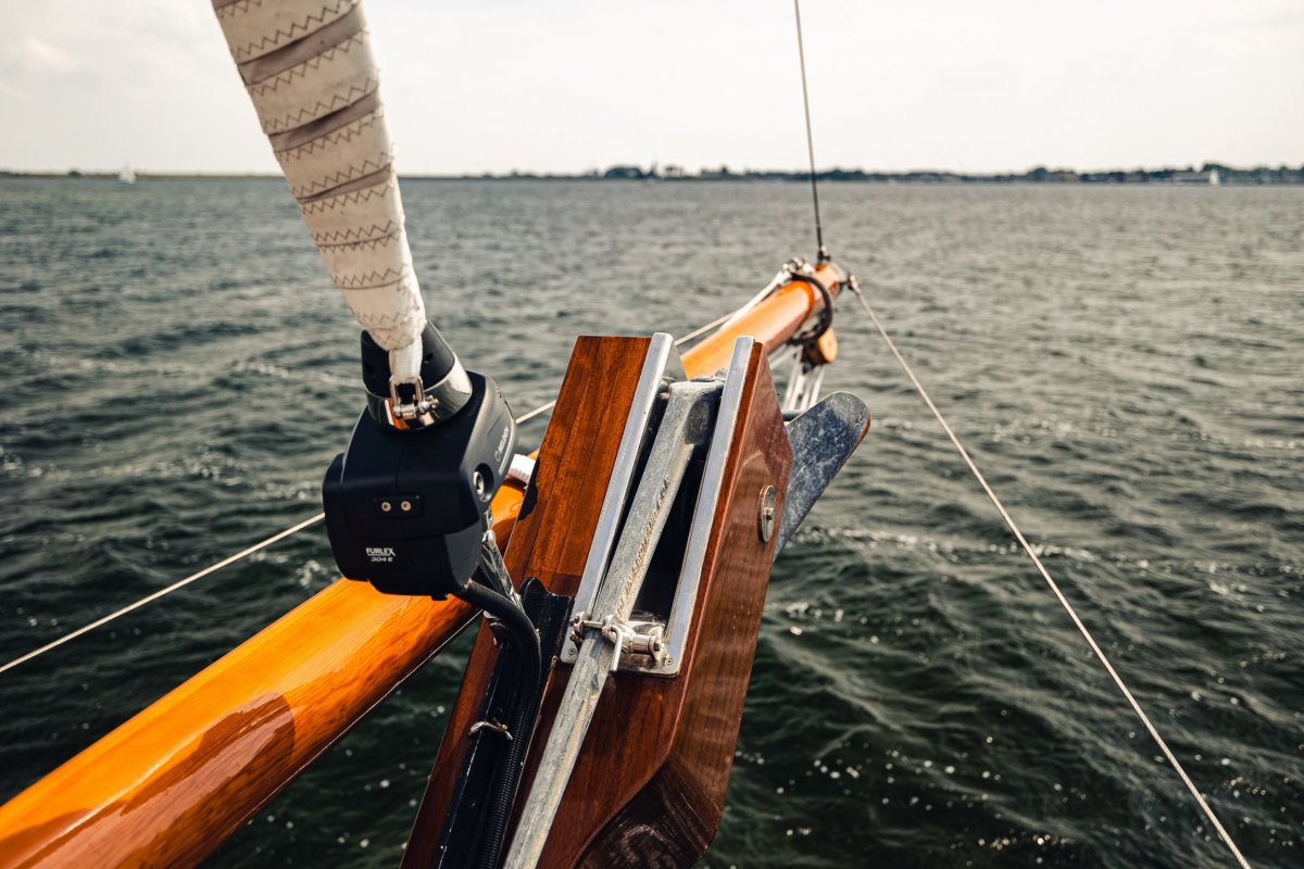 Grootzeilval en gaffelval kunnen worden gehesen via J.Y. lieren
