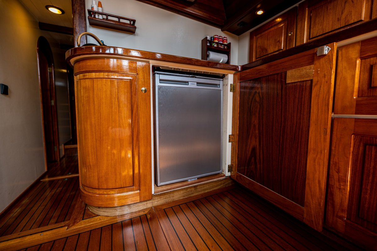 2023: nieuwe machinekamerverlichting, nieuwe houten (grijs geschilderde) vloerpanelen en nieuwe gasveren op het motorluik (in de cockpitvloer).