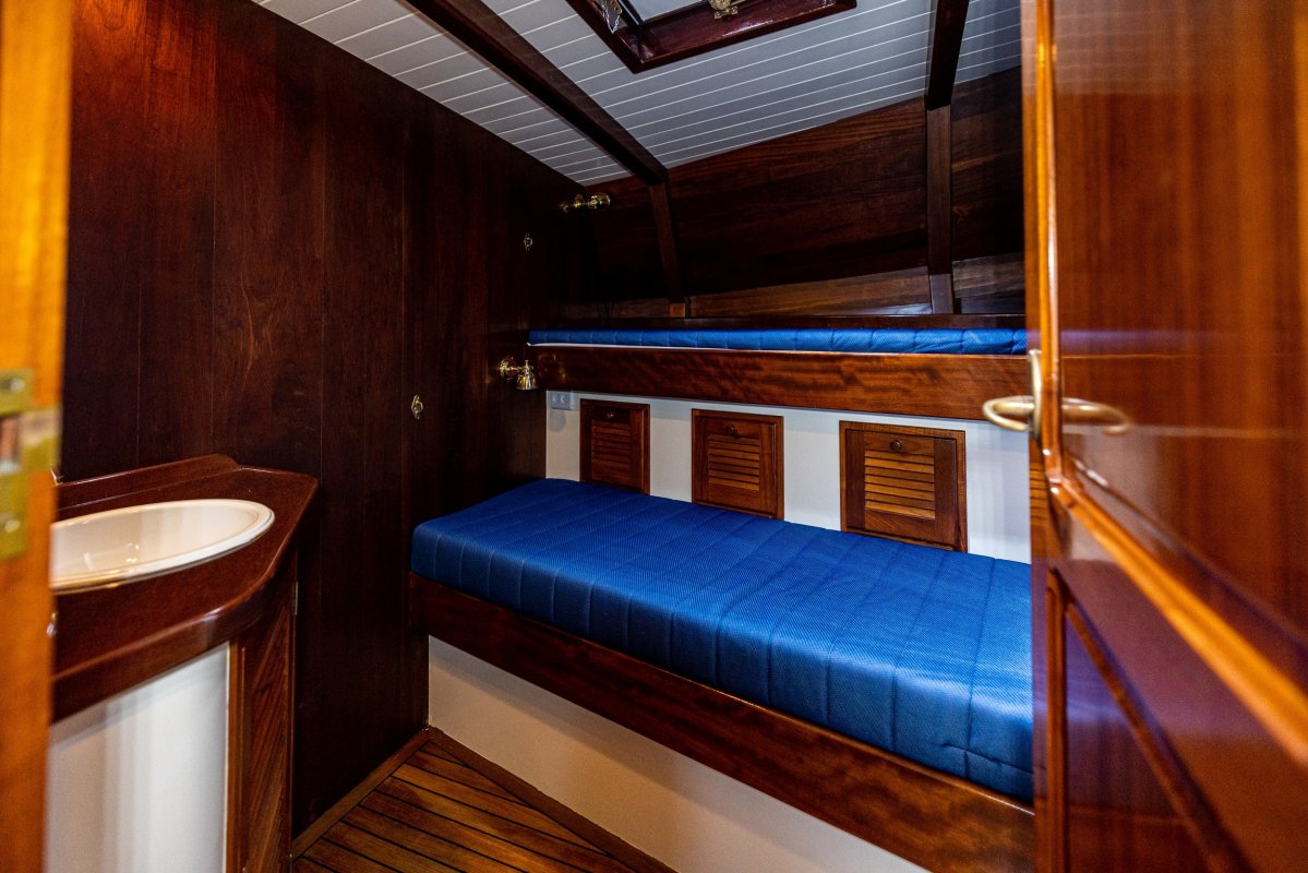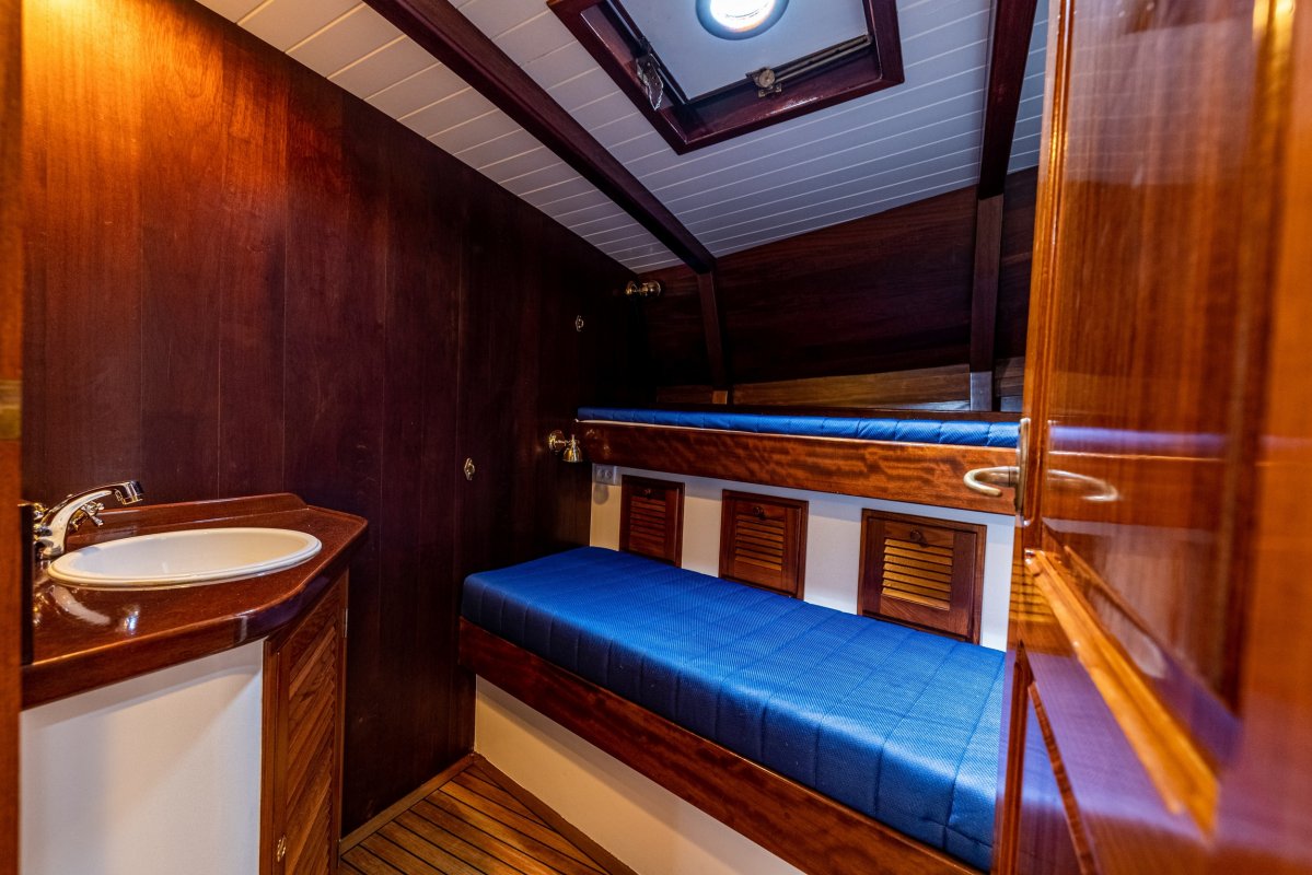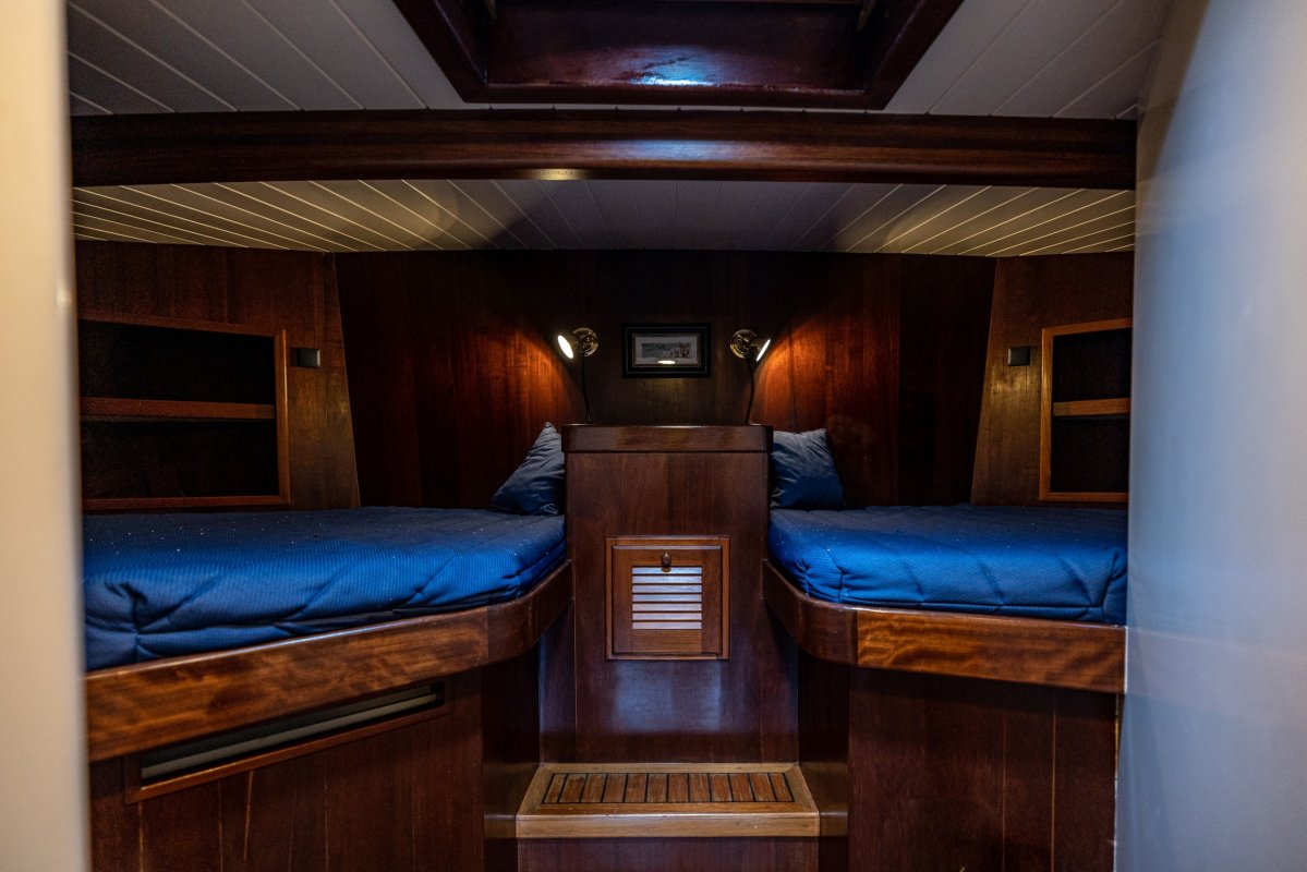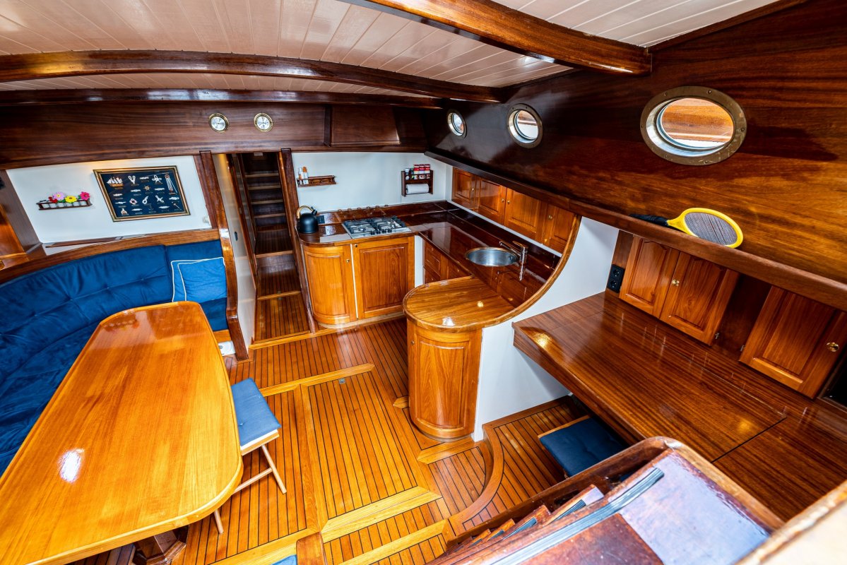 Een grote kuip, zeer ruime salon en kombuis en maximaal 10 slaapplaatsen zorgen ervoor dat de eigenaar en bemanning zowel tijdens korte tochten als langere reizen comfortabel kunnen verblijven. Zelfs met een kleine bemanning is het schip zeer gemakkelijk te zeilen en te manoeuvreren.